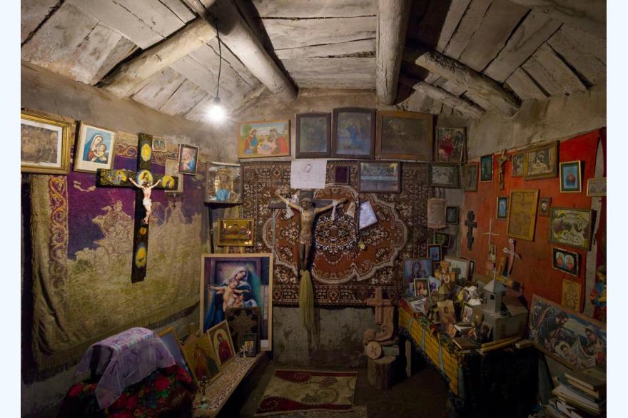 Despite the recent reinstitution of church structures, unofficial places of worship have retained their popularity and are visited both en masse during seasonal pilgrimages and individually in times of difficulty and need. The Surb Hakob (St. James) chapel in the village of Arevik, Armenia, is set up in an old house, typical of traditional Armenian rural architecture. The chapel’s interior is adorned with gifts offered by the faithful: paintings, carpets, embroidered scarfs, crosses and religious books. The Surb Hovhannes (St. John the Baptist) chapel is situated on a mountain top east of the city of Gyumri. One of the most popular pilgrimage destinations in Armenia, it is revered by Apostolic and Catholic Armenians alike, especially by childless couples seeking the saint’s help and intercession. In the recent years, the chapel has been surrounded by votive khachkars (cross-stones), founded by the pilgrims.