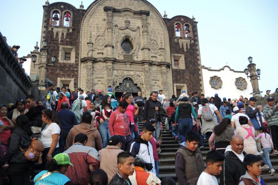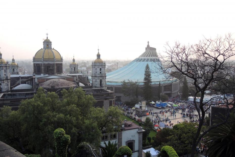 The story of the apparition of the Virgin of Guadalupe is one that almost any of her devotees can recount by heart: On December 9, 1531, only a decade after Spanish troops had conquered and supplanted the Aztec empire, a newly converted native Nahua man, Juan Diego Cuauhtlatoatzin, was walking near a hill known as Tepeyac, on the outskirts of Mexico City. He was on his way to catechism classes when he heard beautiful sounds from atop the hill. Following the sound, he came upon a vision of a beautiful woman floating in the air. She told him, in Nahuatl, that she was the Mother of the true God, and that he should tell the bishop that she wanted a church built there in her honor. Juan Diego went to the bishop to do so, but was not granted an audience, so he returned to Tepeyac. She appeared again and asked him to return to the bishop. The bishop received him, but doubted the claims and asked for a sign. Juan Diego returned to Tepeyac, and the lady promised to send a sign the next day. Juan Diego was not actually able to return that day because his uncle fell gravely sick, but on December 12, he met her again. She reassured him and told him not to fear, describing herself as his mother, one who would care for him. She assured him that his uncle was cured, and told him to go to the hilltop and gather the flowers growing there to bring to the bishop. Though it was December, he found roses and other flowers growing there, and bundled the flowers in his tilma, or cloak, carrying them back to Bishop Zumárraga. When he unfurled the tilma, the image of the Virgin—the same image venerated above the altar at the basilica today—appeared to the bishop. When Juan Diego returned to his uncle, he learned that the Virgin had also appeared to the uncle, and had called herself by the name Guadalupe. According to tradition, a small chapel was built there almost immediately, and the image of Our Lady of Guadalupe was placed there.