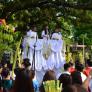 Sometime during Holy Week (or even on several nights), a Senakulo — a stage or street play about the life and Passion of Jesus — takes place in many communities, especially in Bulacan, Rizal and Pampanga provinces.1 Whereas a Pabása entails singing or reciting the Passion, a Senakulo performs it in full costume and drama. An outdoor Senakulo often parades a figure of Jesus carrying the Cross through the streets, and emphasizes the violence and brutality of Jesus’ persecutors. Bloody reenactments at San Pedro Cutud, San Fernando, Pampanga, Kapitangan, Paombong, Bulacan, the Ang Pagtaltal Sa Balaan Bukid at Jordan, Guimaras Island are the most infamous versions of these plays, but the style and interpretive message of the Senakulo varies. The Senakulo at Malolos, Bulacan is more representative. In some settings today, the performance takes place on projected video screens, but the experience is still communal.