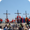 The images of Holy Week in the Philippines that often get the most exposure in media worldwide are from San Pedro Cutud, San Fernando, Pampanga province, where male devotees whip themselves bloody or are even tied or nailed to a cross to manifest Jesus’ suffering. These devotions are discouraged by the Church, but often are respected by the faithful. Less extreme acts of penitensya are often typically part of Filipino Catholics’ Holy Week practice. Filipinos young and old often make a panata, a vow to participate in certain devotions, or to abstain from smoking, liquor, soft drinks, or meat over the course of the week.