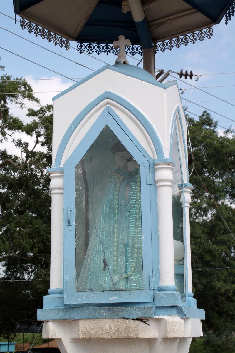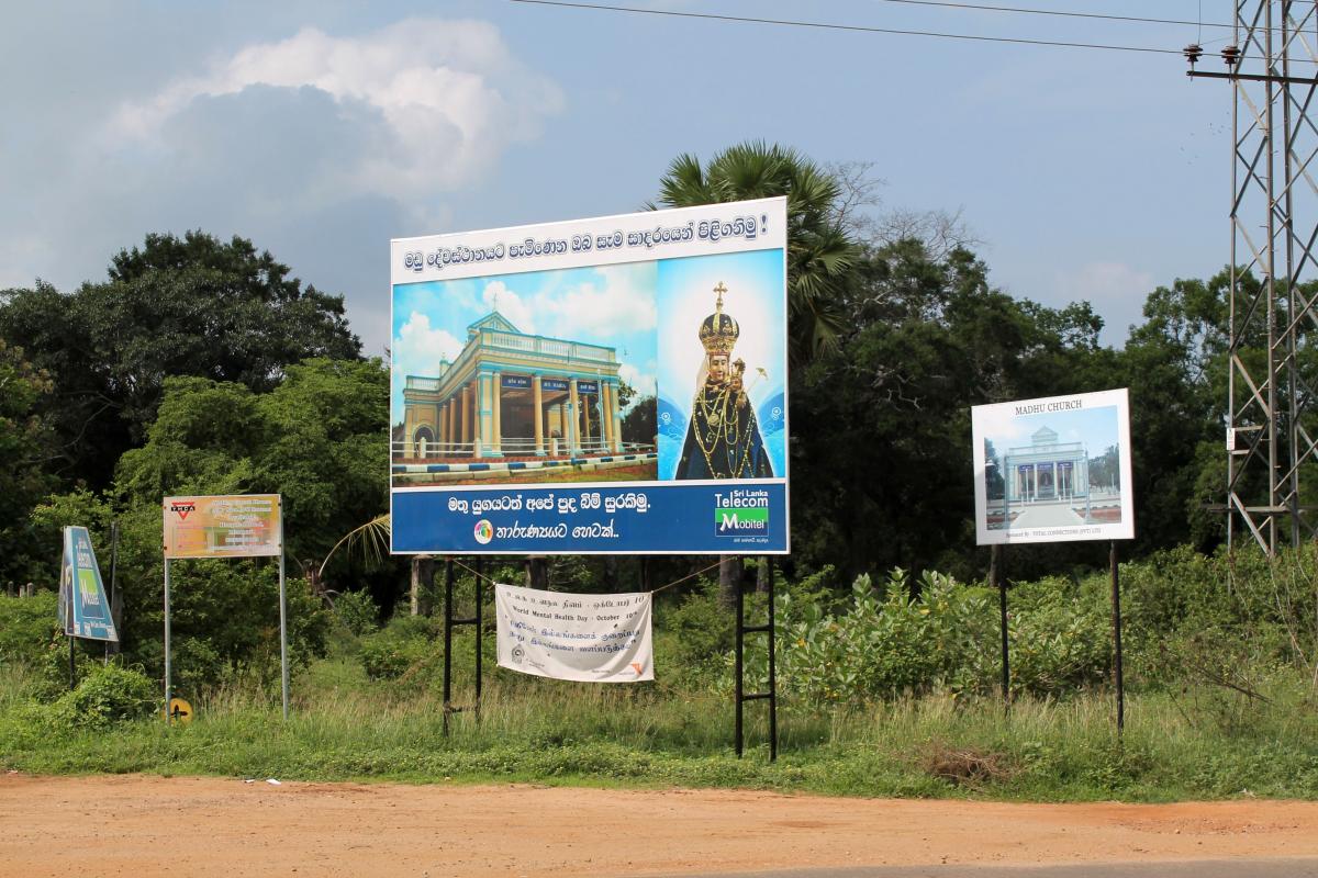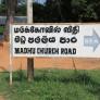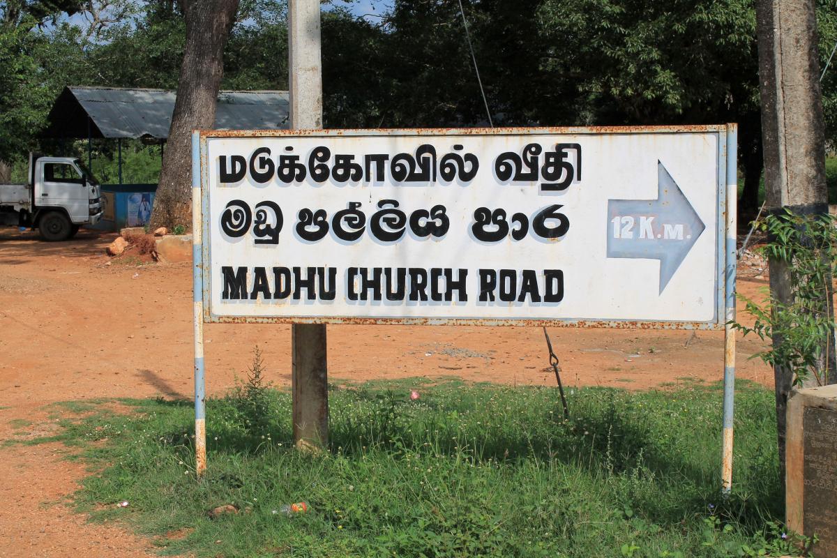 Our Lady of Madhu is in the middle of the jungle. The Madhu Church Road branches off from highway A14 and is marked by a large gate. Nearby, a hotel (the term for restaurants in Sri Lanka) managed by the Sri Lankan Army sells rice and curry for pilgrims. Another road leads out from Madhu Shrine through an area that has yet to be fully cleared of mines and IEDs. This road emerges at Andankulam junction, where there is a much smaller shrine to the Passion of Jesus Christ.