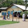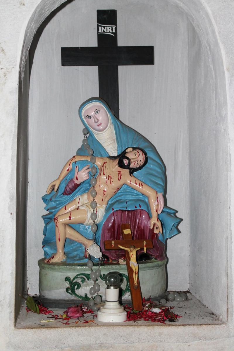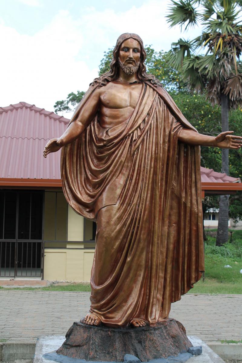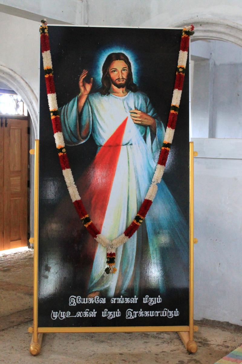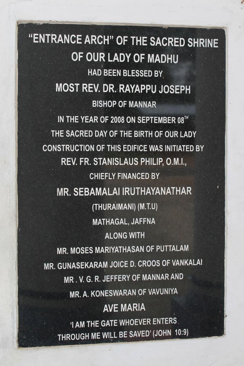 Our Lady of Madhu is in the middle of the jungle. The Madhu Church Road branches off from highway A14 and is marked by a large gate. Nearby, a hotel (the term for restaurants in Sri Lanka) managed by the Sri Lankan Army sells rice and curry for pilgrims. Another road leads out from Madhu Shrine through an area that has yet to be fully cleared of mines and IEDs. This road emerges at Andankulam junction, where there is a much smaller shrine to the Passion of Jesus Christ.