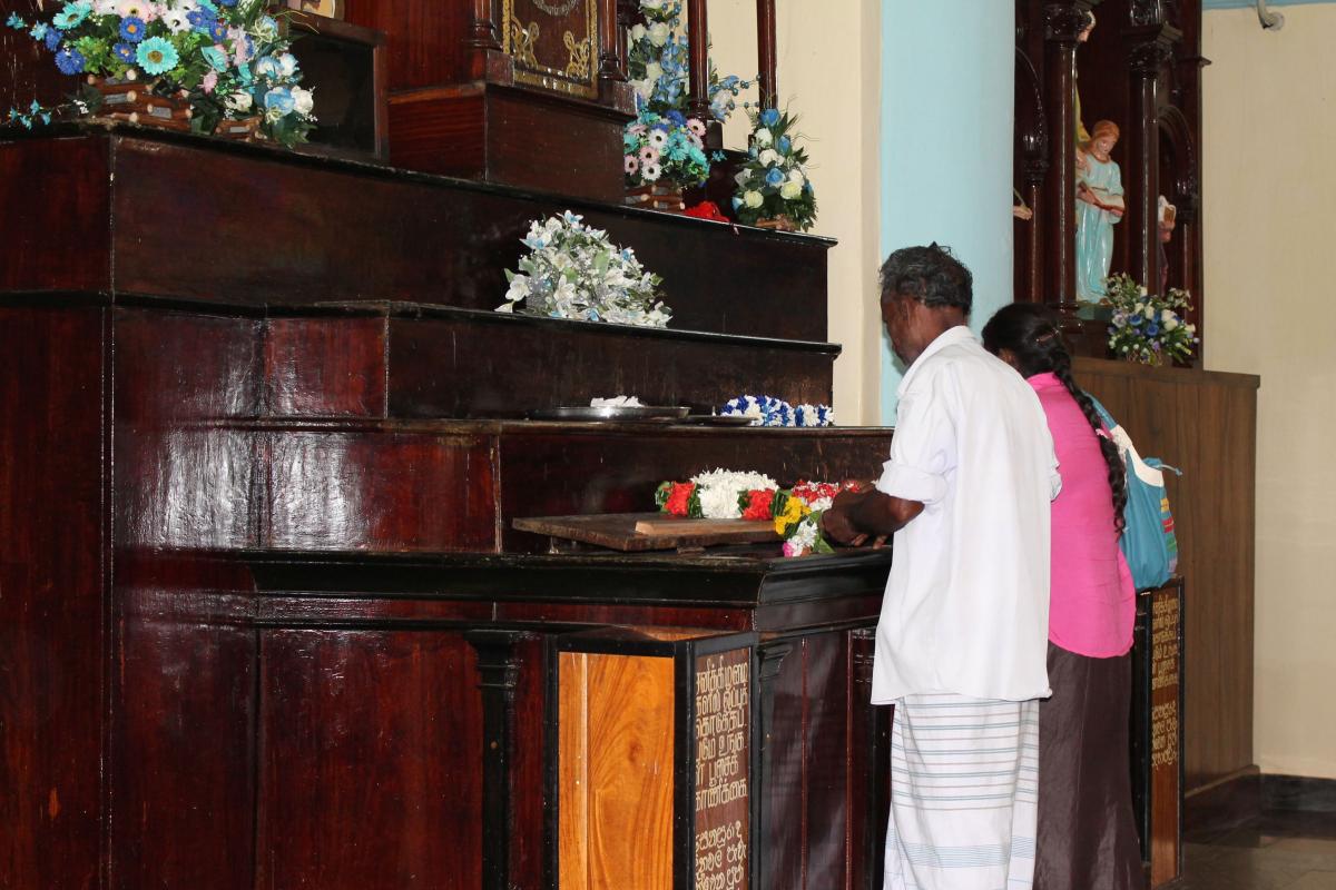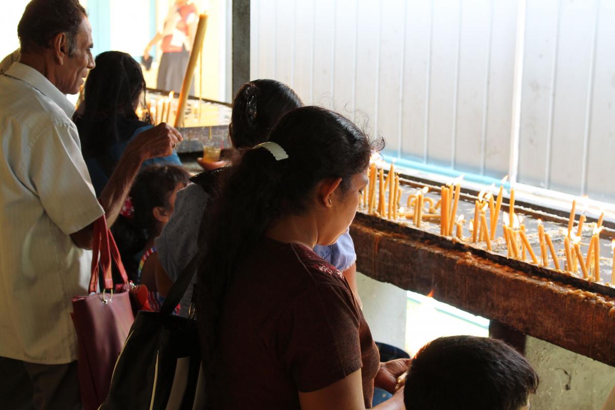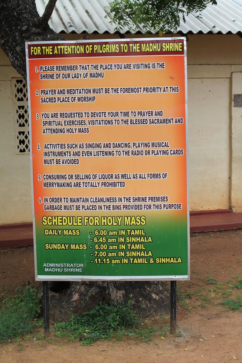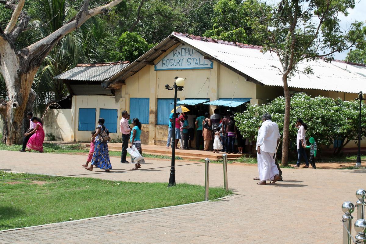 Madhu Shrine is located in the Mannar diocese, a Tamil speaking area in the northwest part of Sri Lanka. However, Madhu is sacred to both Tamil and Singhalese Catholics, and even Buddhists and Muslims would also come to the shrine to pay respects to Mother Mary. Madhu Shrine hosts pilgrims throughout the year. Usually, pilgrims come for several days, and stay in one of the hostels especially reserved for them. Signs make it clear that alcohol is prohibited along with dancing and “merry-making” of any kind. Pilgrims usually buy medals, scapulars, and images of Our Lady of Madhu, which they have blessed by a priest.
